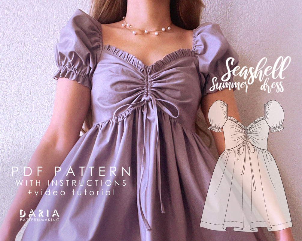 You will need the following materials to sew the Seashell Summer Dress:- The main fabric. Light to medium-weight, non-stretch, non-transparent fabrics are recommended, such as cotton or linen poplin, batiste, lawn or seersucker; silk or polyester satin, charmeuse or twill; silk, rayon or polyester georgette, crepe or crepon.
